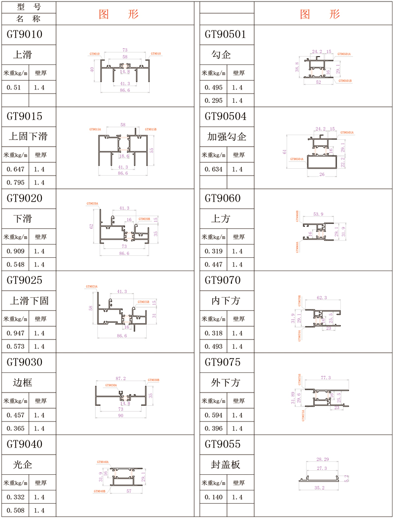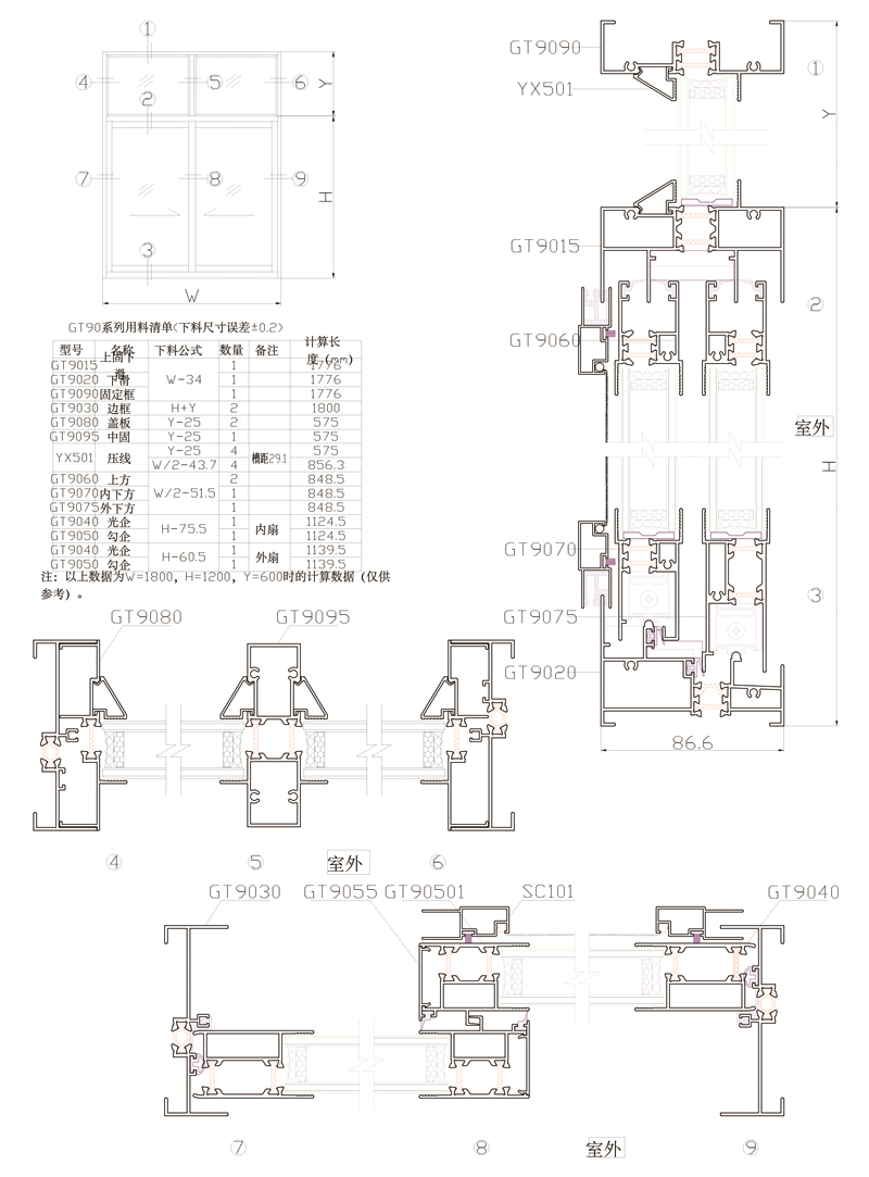 GT90系列推拉窗簡圖
